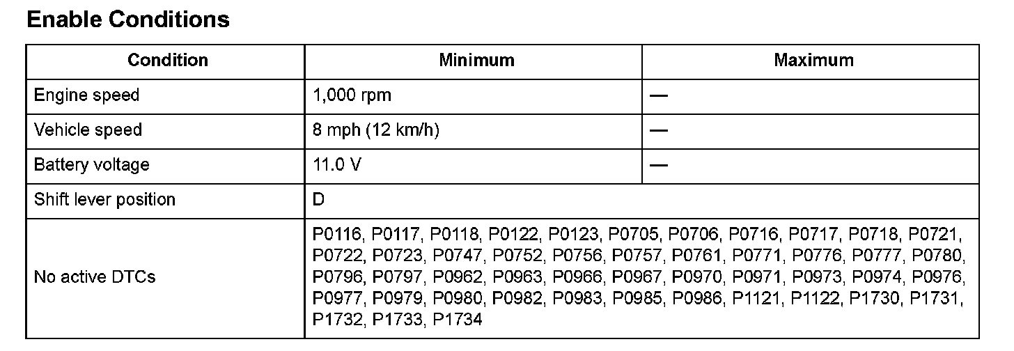 Start the engine, shift to D position, and drive the vehicle at a speed of 8 mph (12 km/h) or more for at least 12 seconds in 4th gear.