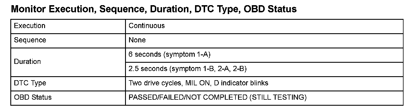 Monitor Execution, Sequence, Duration, DTC Type, OBD Status