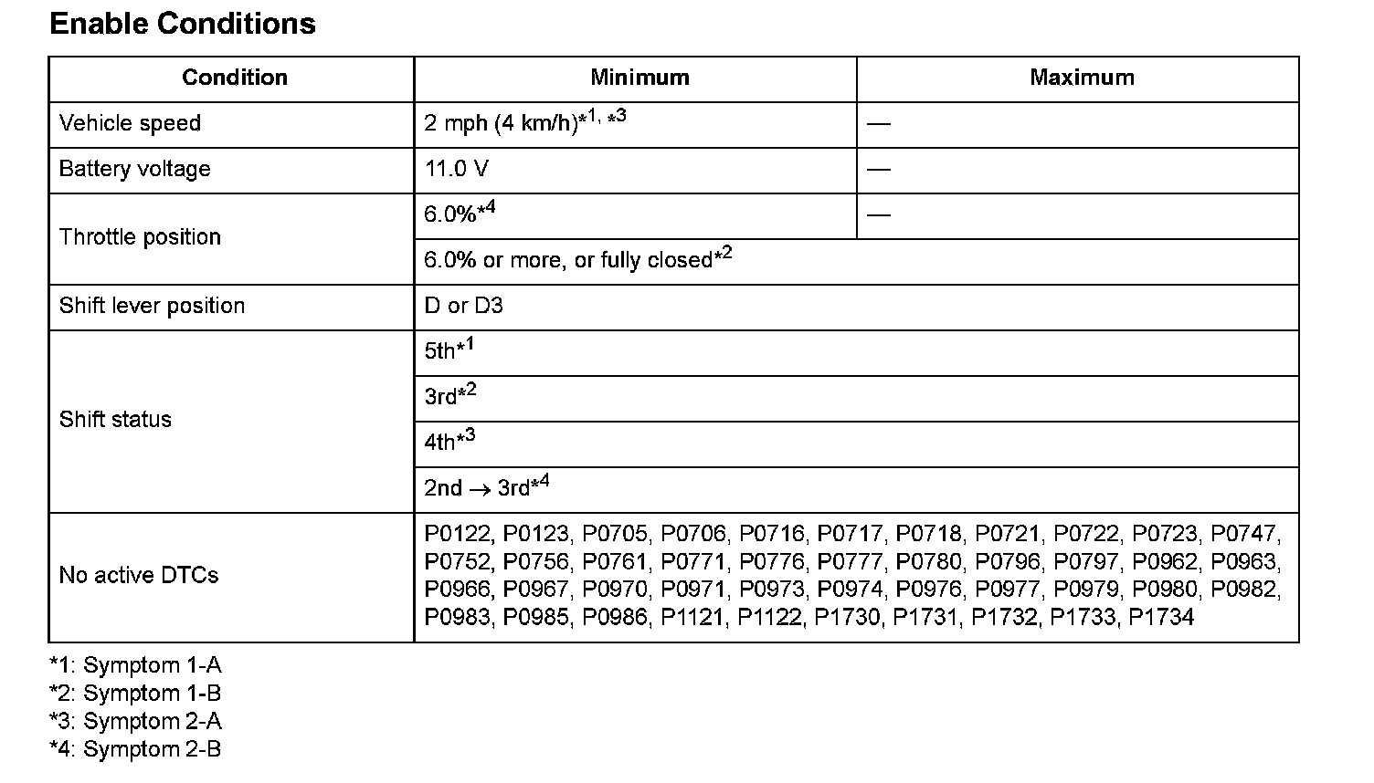 - Symptom 1 occurs during the 1st drive cycle, and symptom 2 occurs during the 2nd drive cycle.