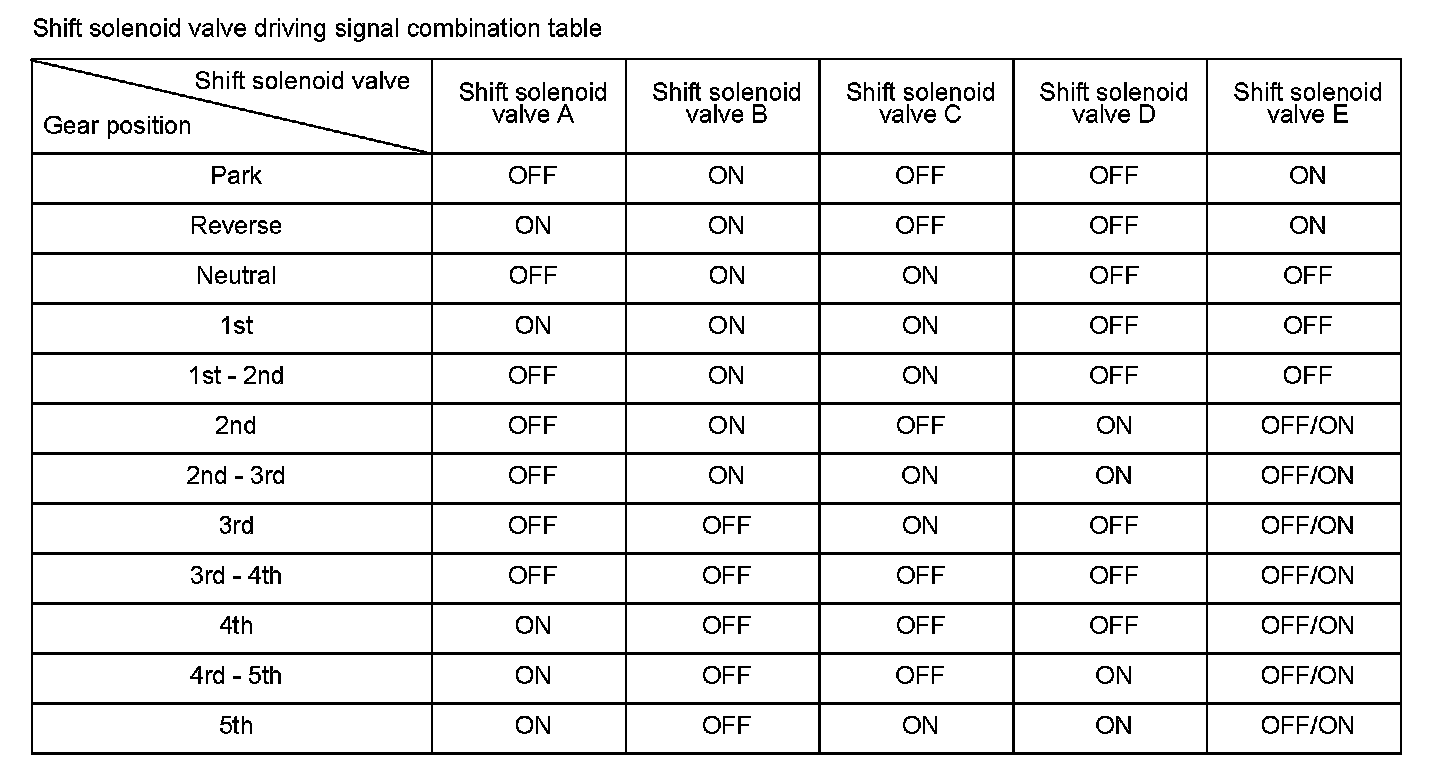 Shift solenoid valve C is installed in the transmission housing. It is controlled by the ON/OFF signal from the powertrain control module (PCM), to apply line pressure to shift valve C. The signal from the PCM is output to apply clutch pressure control pressure to the proper gear change clutch according to the gear change schedule. When the signal to shift solenoid valve C from the PCM is OFF, and line pressure is discharged, shift valve C is inactive. When the signal to shift solenoid valve C from the PCM is ON, and line pressure is applied to shift valve C, it operates against the shift valve C spring. The PCM monitors the mainshaft speed and the countershaft speed at the gear change determined by the shift schedule. When an improper gear ratio is output compared to the predetermined gear change mode, a shift solenoid valve C OFF failure is detected and a DTC is stored.