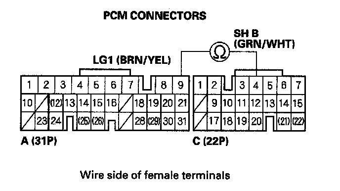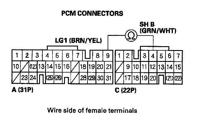 10. Disconnect PCM connectors A (31P) and C (22P).