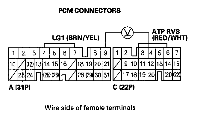 8. Measure voltage between PCM connector terminals C12 and A9.