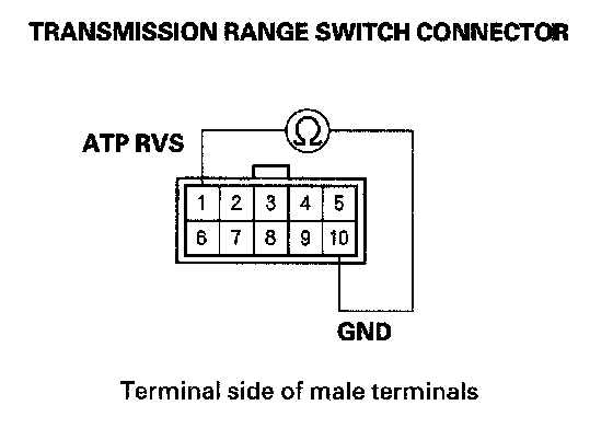 11. Check for continuity between the No. 1 and No. 10 terminals at the transmission range switch. The shift position must be R.
