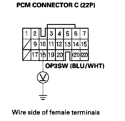 11. Measure voltage between the 3rd clutch transmission fluid pressure switch connector terminal and body ground.