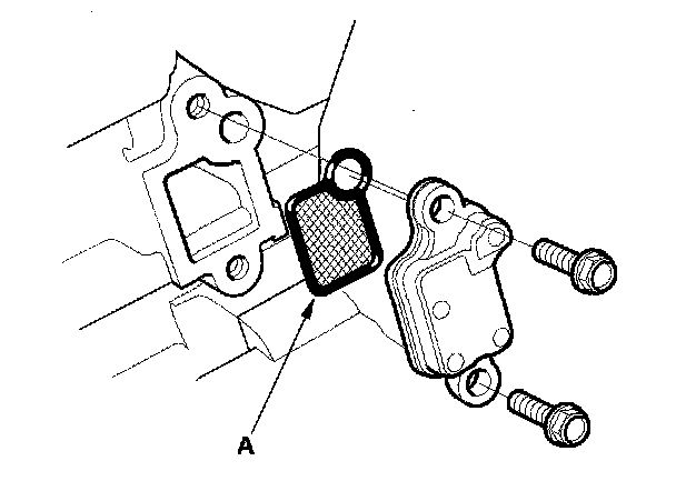 7. Remove the VTC strainer (A), and check it for clogging.