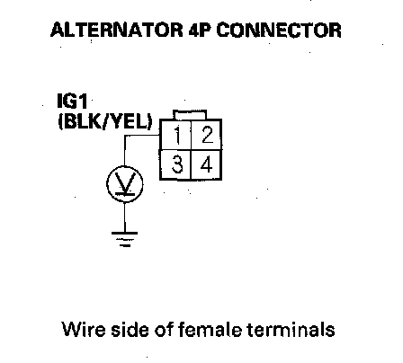 11. Measure voltage between alternator 4P connector terminal No. 1 and body ground.