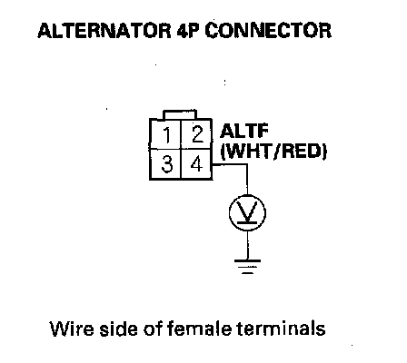 12. Measure voltage between alternator 4P connector terminal No. 4 and body ground.