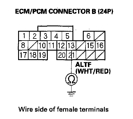 17. Check for continuity between ECM/PCM connector terminal B13 and body ground.