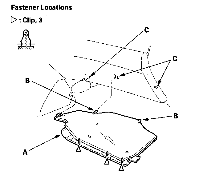 1. Gently pull down the edge nearest the glove box to detach the clips.