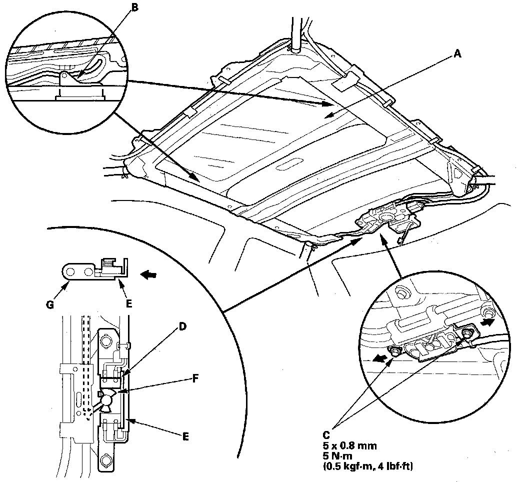 2. With the moonroof wrench, close the glass (A) fully: