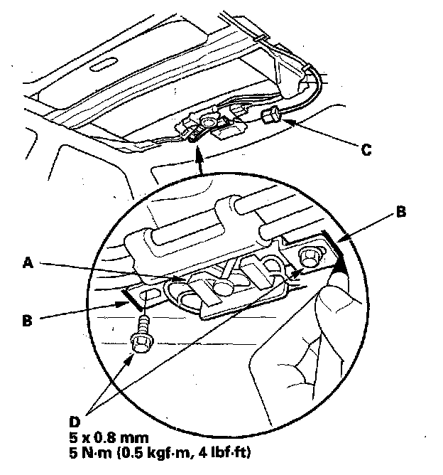 3. Disconnect the 4P connector (0 from the moonroof limit switch.