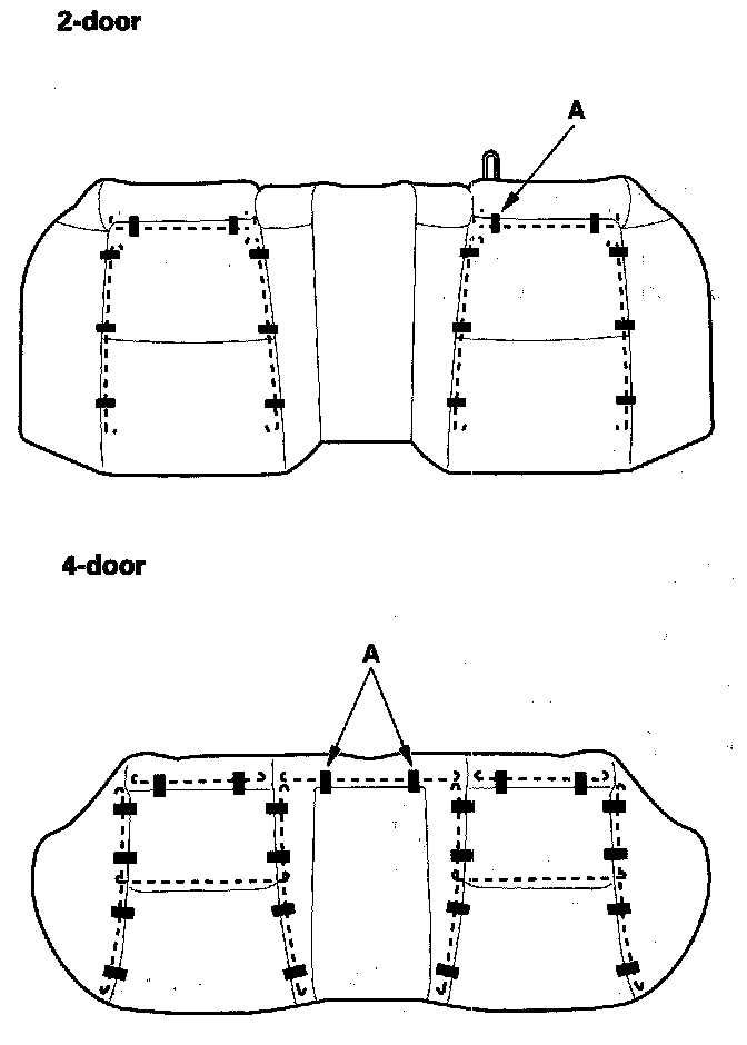 Rear Seat Cushion Cover Replacement1. Remove the seat-backs and seat cushion, 2-door, 4-door.