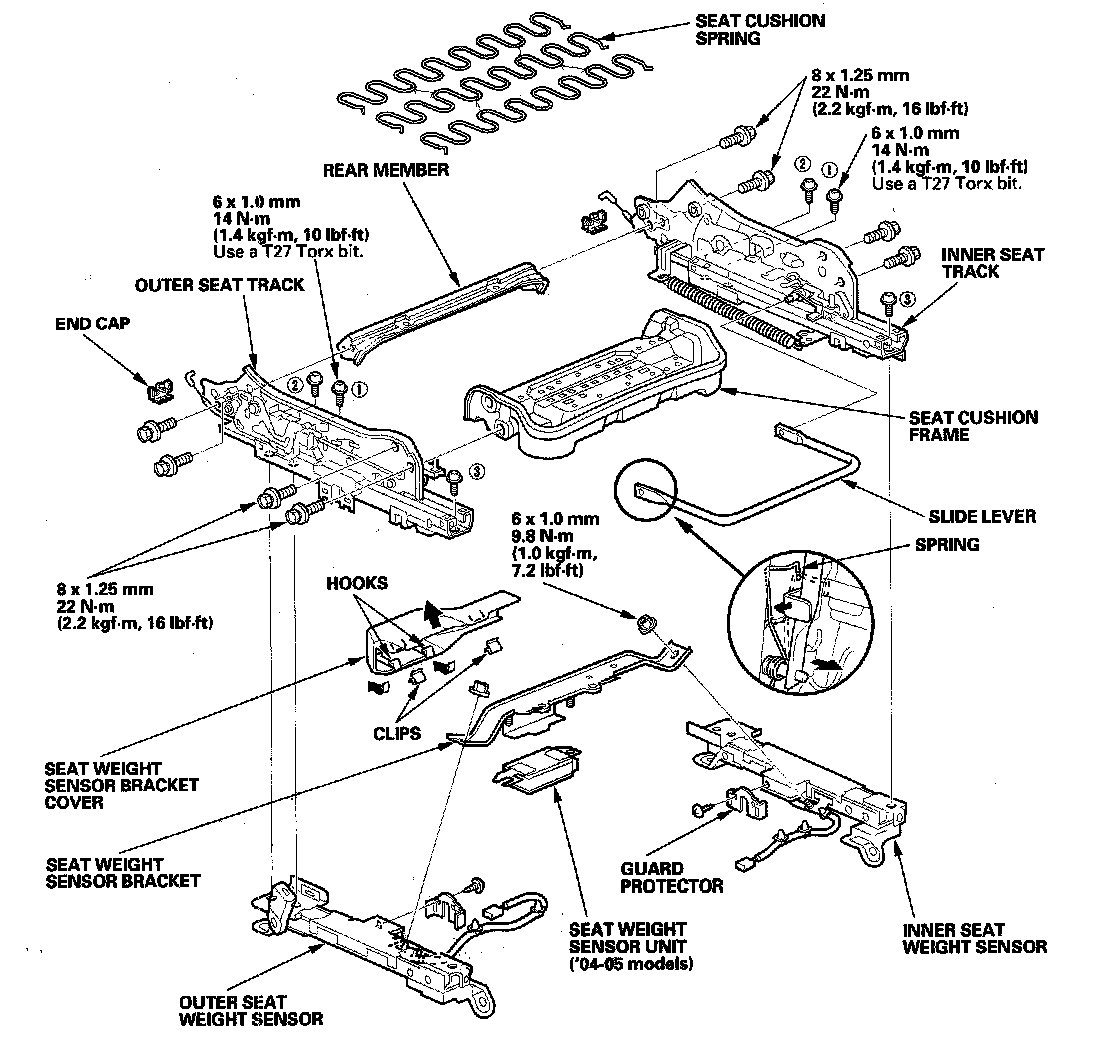 - '04-05 models: The front passenger's weight sensor (SWS) unit must be calibrated after any of these actions: