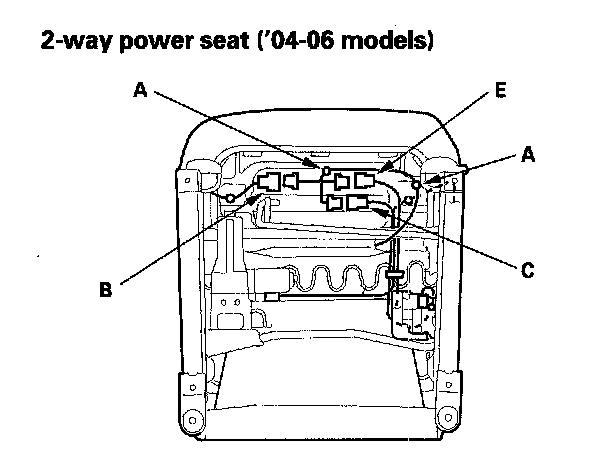 - Power seat harness connector (C) on the driver's and passenger's power seats.
