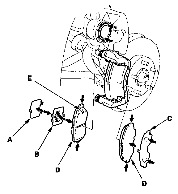 If you are reusing the pads, always reinstall the brake pads in their original positions to prevent a momentary loss of braking efficiency.