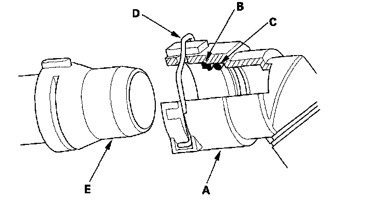 9. Check the lock (D). If the lock is damaged or deformed, replace it. When installing the new lock on the connector, press it straight down along the groove.
