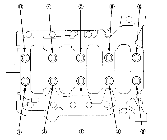 Tighten the bearing cap bolts in sequence to 29 Nm (3.0 kgf-m, 22 ft. lbs.).