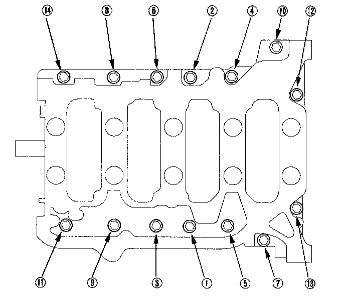 Tighten the 8 mm bolts in sequence to 22 Nm (2.2 kgf-m, 16 ft. lbs.).