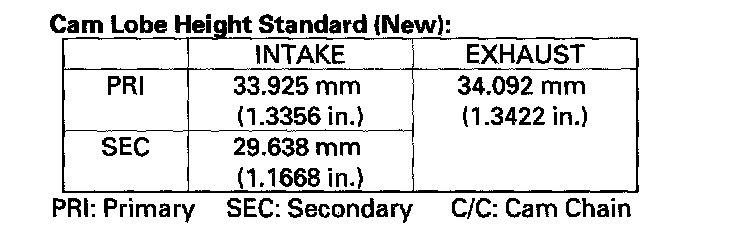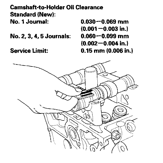 ^ If the camshaft-to-holder clearance is beyond the service limit and the camshaft has been replaced, replace the cylinder head.