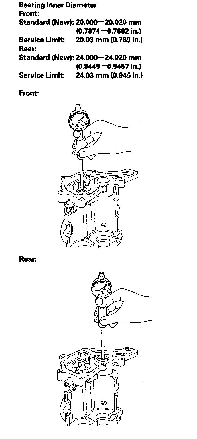 4. Measure the inner diameter of the No. 1 bearing for the front balancer shaft hole and the rear balancer shaft hole.