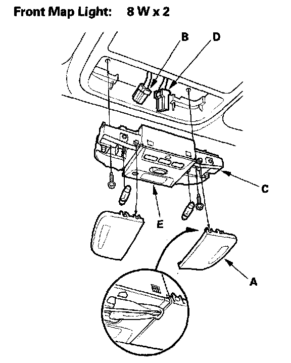 4. Disconnect the 8P connector (D) from the ambient light (E).