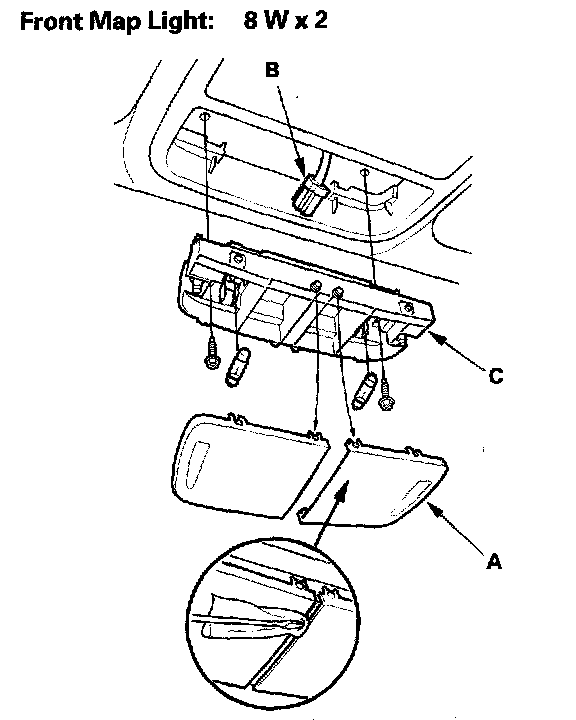 1. Carefully pry off the lens (A) with a small screwdriver.