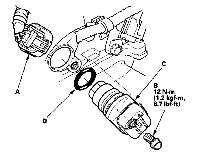 6. Install the sensor in the reverse order of removal with a new O-ring (D).
