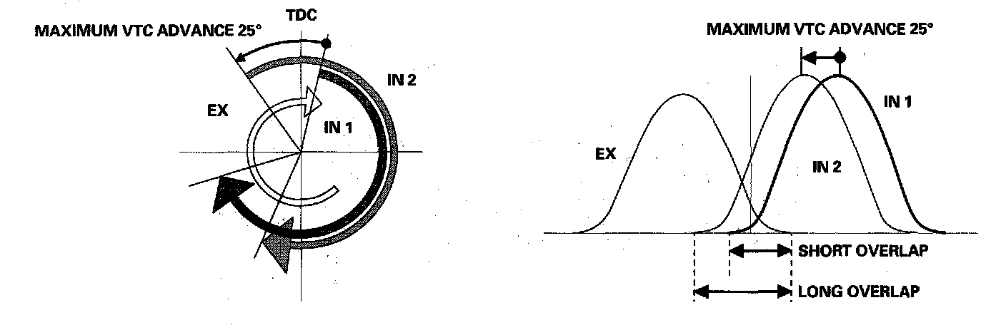 - The VTC system makes continuous intake valve timing changes based on operating conditions.