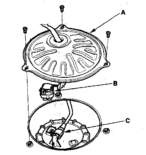 8. Remove the strainer case (A), the fuel gauge sending unit (B), and the wire harness (C).