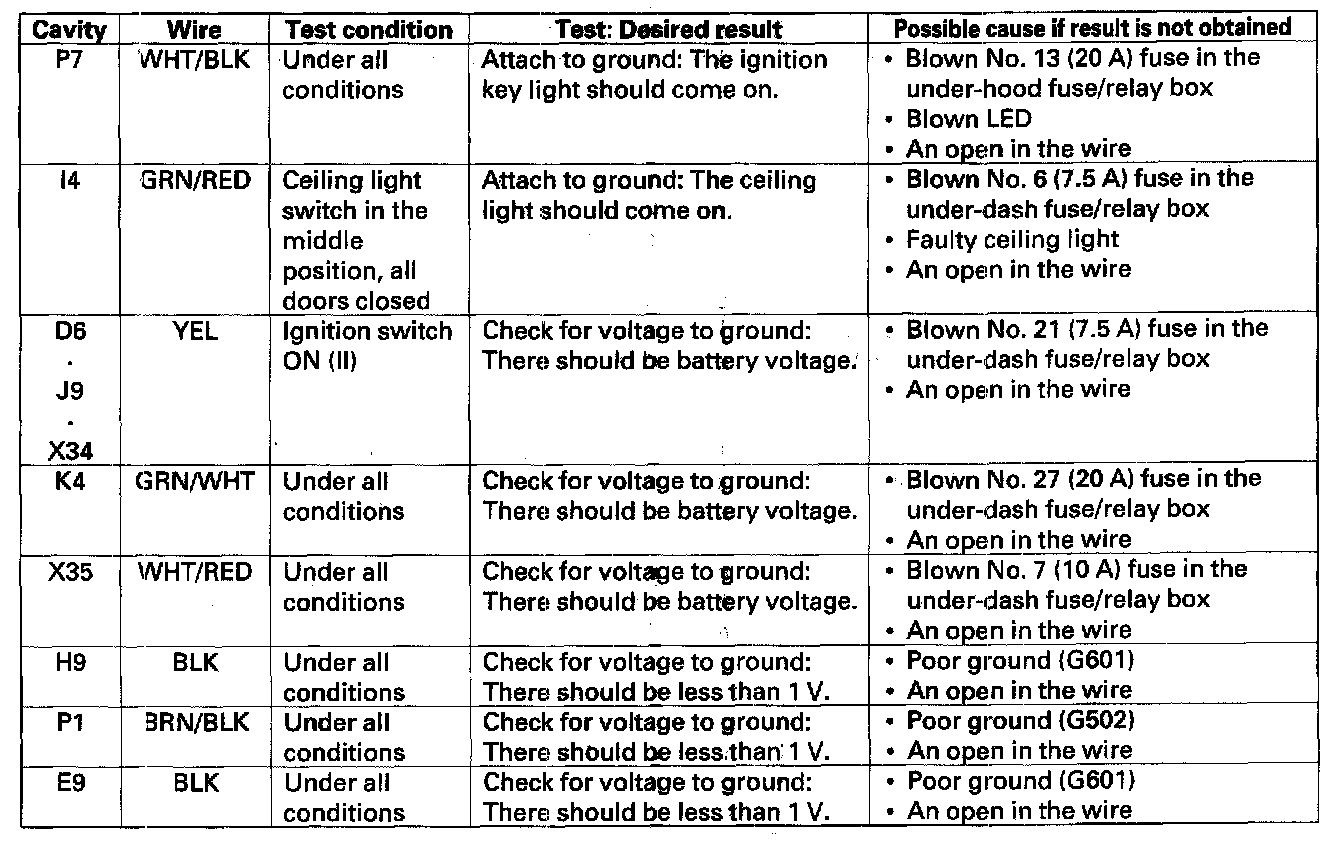 4. Reconnect he connectors to the under-dash fuse/relay box, and make sure these input tests at the appropriate connectors on the under-dash fuse/relay box.