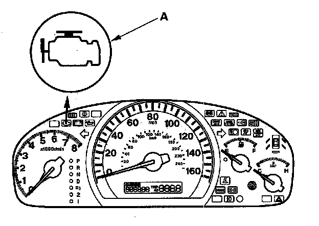 1. Start the engine, and check the MIL (A).