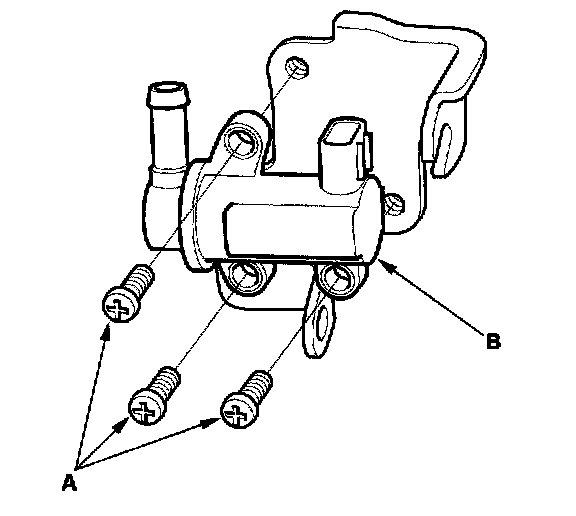 4. Remove the EVAP canister purge valve (B) from the bracket.