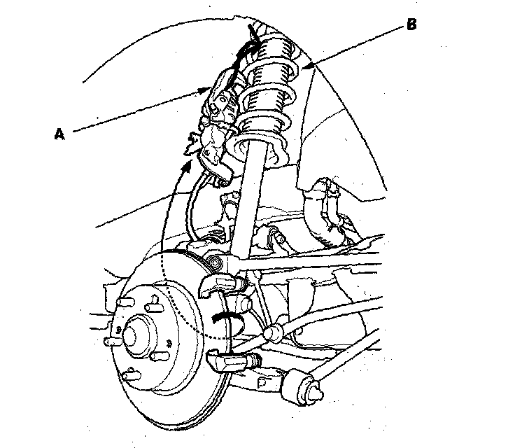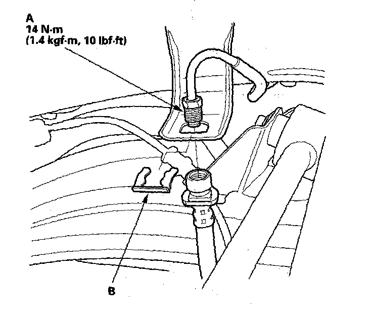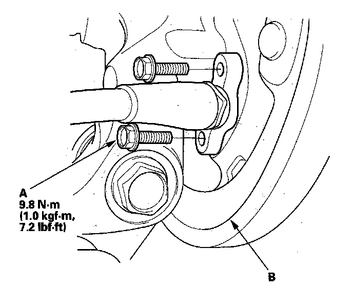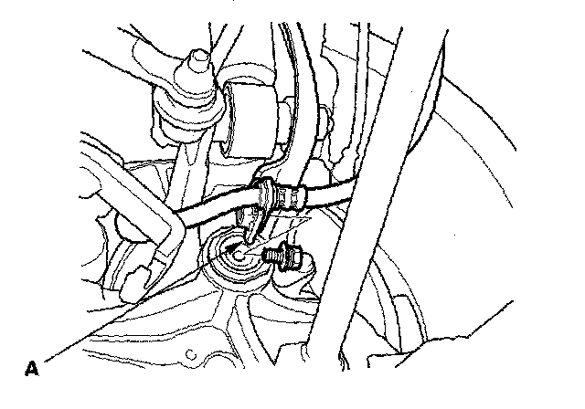 14. Disconnect the brake line (A) and the brake hose clip (B).