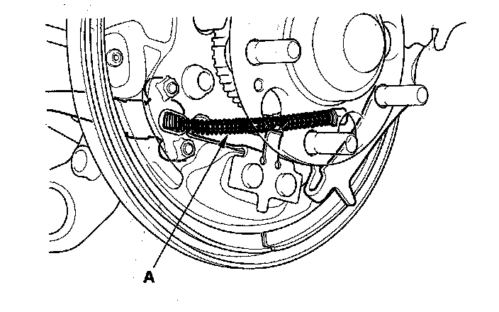 13. Hook the caliper body (A) on the damper spring (B), then go to step 17.