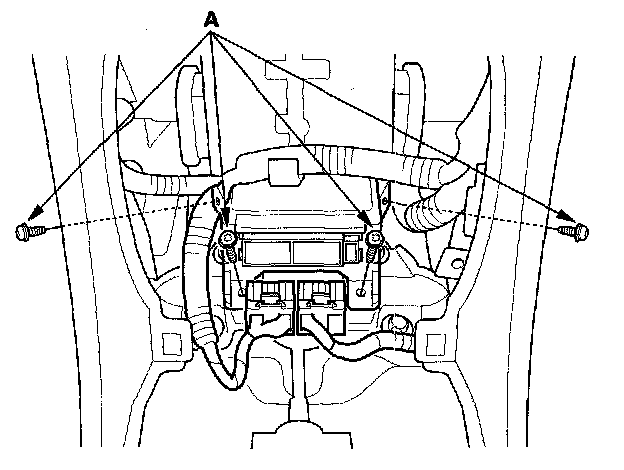 8. Disconnect the connectors and remove the Torx bolts (A), then pull out the SRS unit.