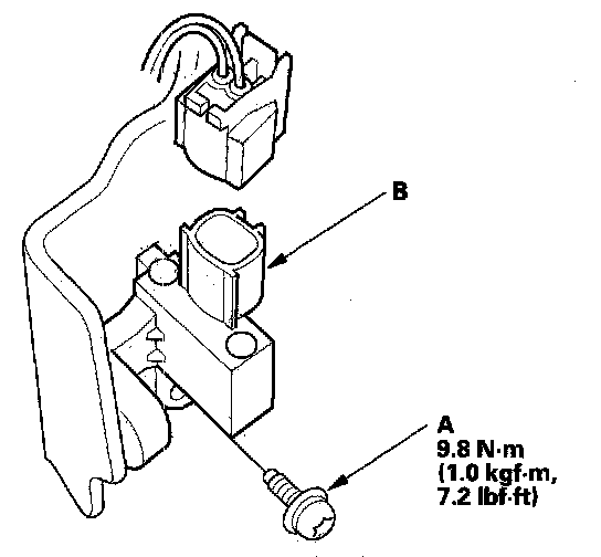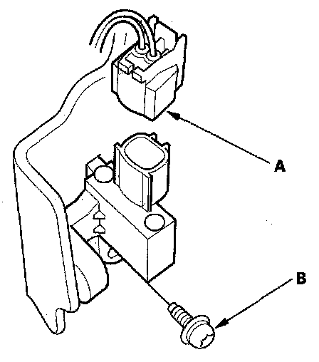 1. Install the new driver's seat position sensor with a Torx bolt (A), then connect the floor wire harness or seat position sensor harness 2P connector to the driver's seat position sensor (B).