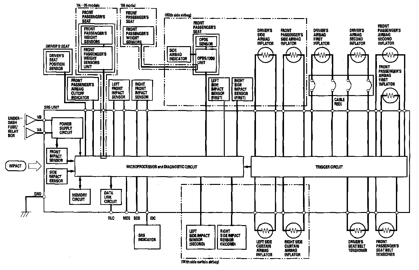 For better serviceability, the SRS unit memory stores a DTC that relates to the cause of the malfunction, and the unit is connected to the data link connector (DLC). This information can be read with the HDS when it is connected to the DLC (16P).