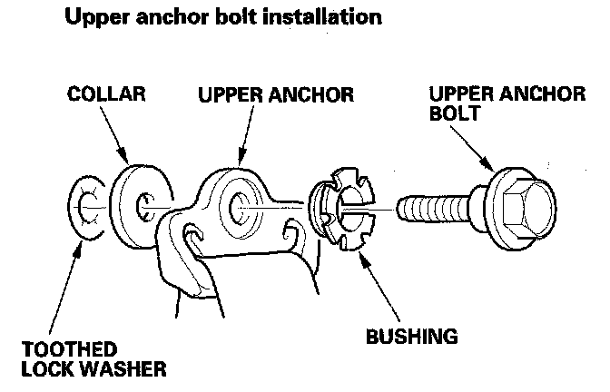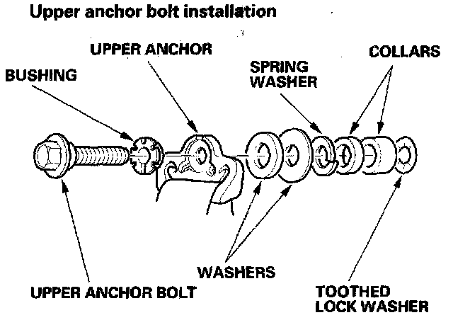 - Assemble the washers, collars, and bushings on the upper and lower anchor bolts as shown.