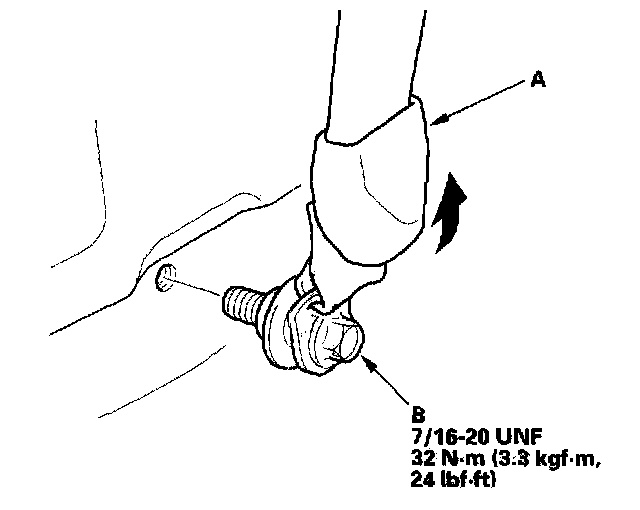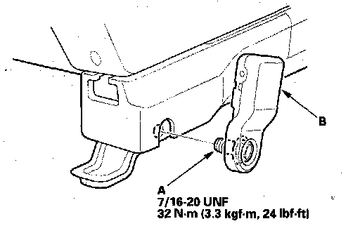 4. Remove the lower anchor bolt (A), then remove the lower anchor (B).