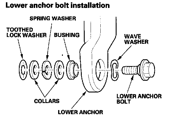 - Assemble the washers, collars, and bushing on the lower anchor bolt as shown.