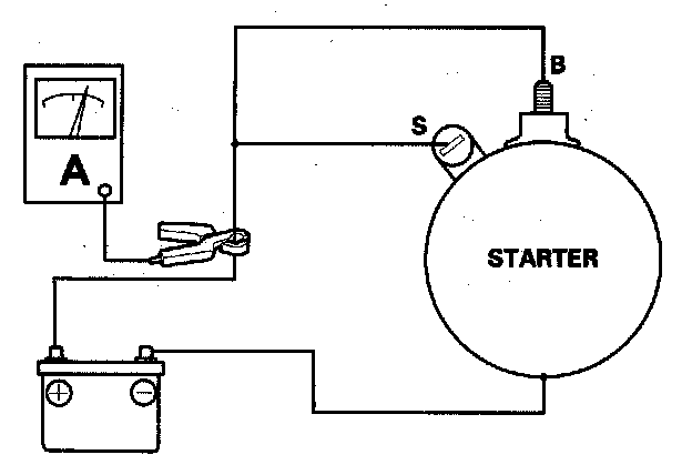 6. If the electric current and motor speed meet the specifications when the battery voltage is at 11.5 V, the starter is working properly.