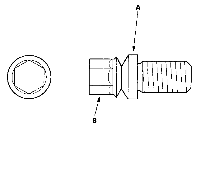 7. Tighten the shear bolts (A) until the hex heads (B) twist off.