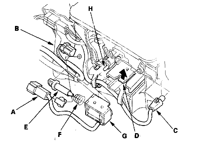 5. Install the shift look plunger (E) and plunger spring (F) in the new shift lock solenoid (G).