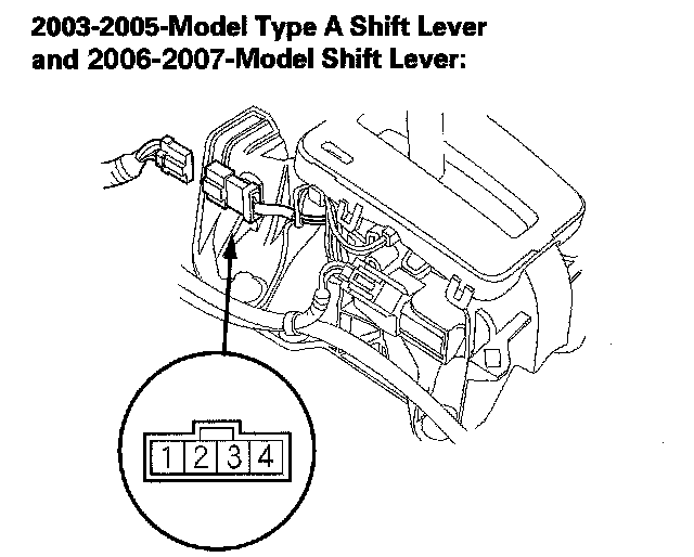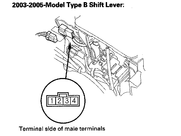 4. Shift out of the P position or press the shift lever button while in P position, and check for continuity between terminals No. 3 and No. 4. There should be continuity.