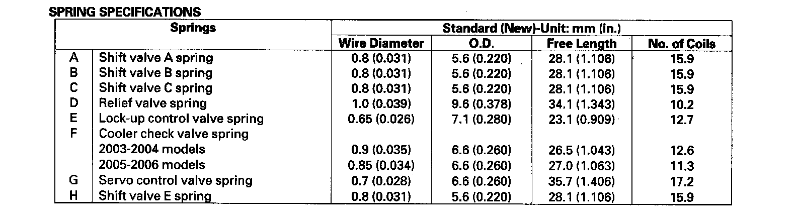 2. Install the valves and springs in the sequence shown for the main valve body, regulator valve body 2003-2004 models, 2005-2007 models, and servo body. Refer to the following valve cap illustrations, and install each valve cap so the end shown facing up will be facing the outside of the valve body.