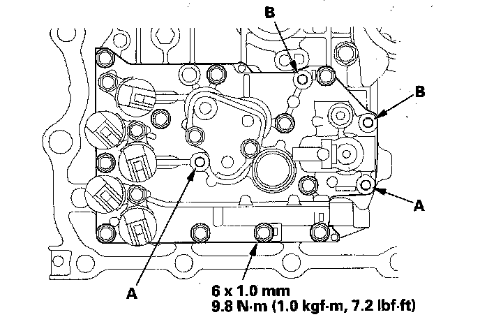 Valve Body and ATF Strainer Removal1. Remove the ATF feed pipes (A) and ATF joint pipes (B).