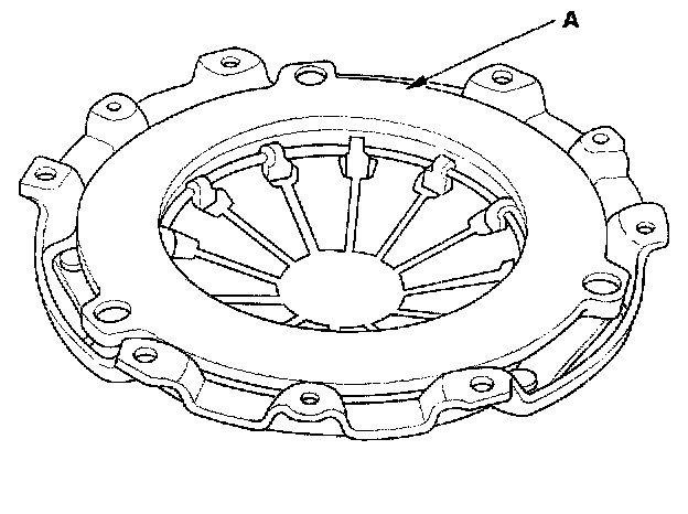 4. Inspect the fingers of the diaphragm spring (A) for wear at the release bearing contact area.