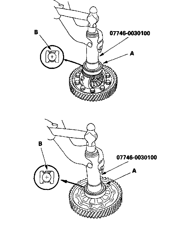 NOTE: Place the seal part of the bearing (B) towards the outside of the differential, then install it.