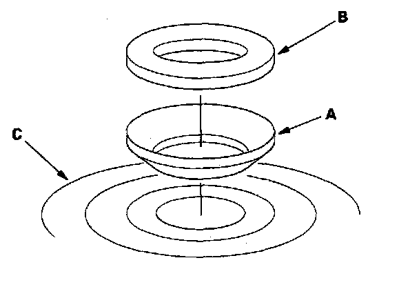 2. Throughly clean the spring washer (A) and washer (B) before installing them on the clutch housing side ball bearing (C). Note the installation direction of the spring washer.