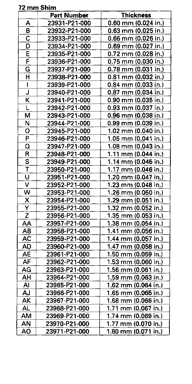 Select the shim closest to the amount calculated, for example the 1.80 mm (0.0709 inch) shim.